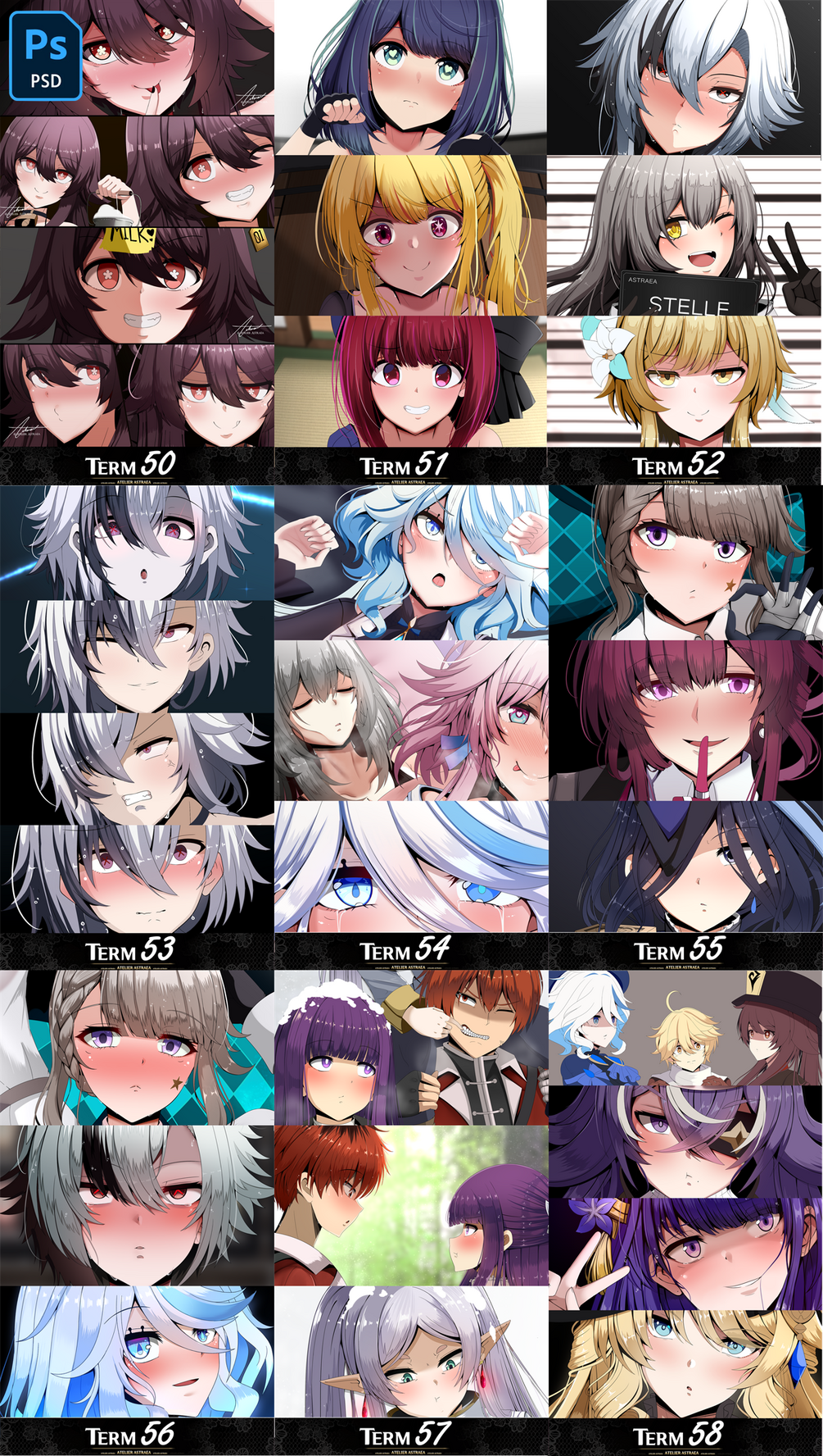 All PSD, PNG and Sketches starting from Term 50 to 59 of patreon