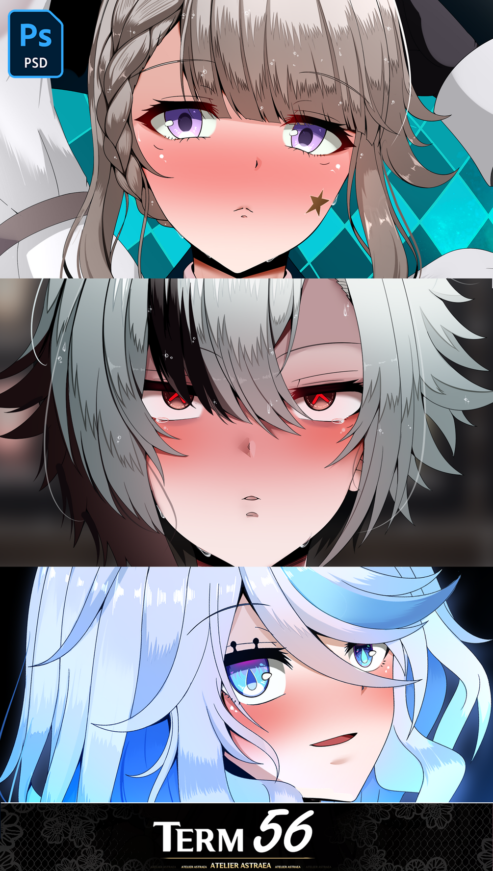 This is a legacy rewards of Term 56 from Patreon. It contains PSD Files, HD PNGs and Sketches featuring Arlecchino, Furina and Lynette from Genshin Impact
